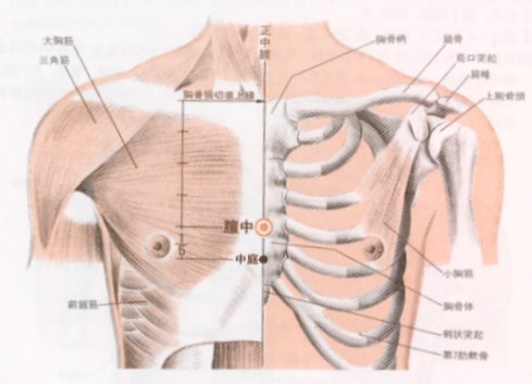 전중혈을 양쪽젖꼭지 사이로 알고 있었는데 경혈도를 보니까