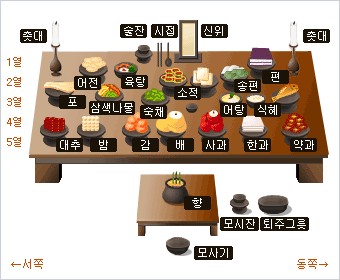 홍동백서(紅東白西) - 붉은 과일은 오른쪽.