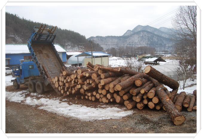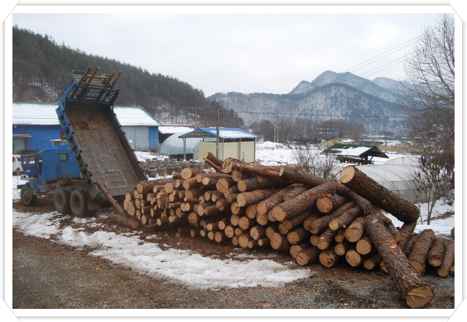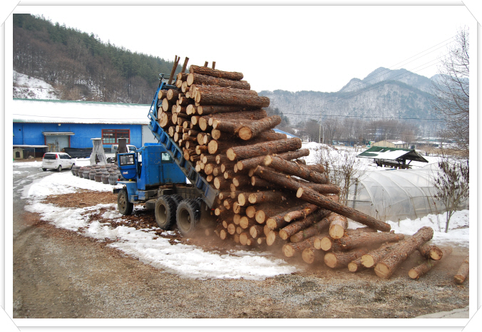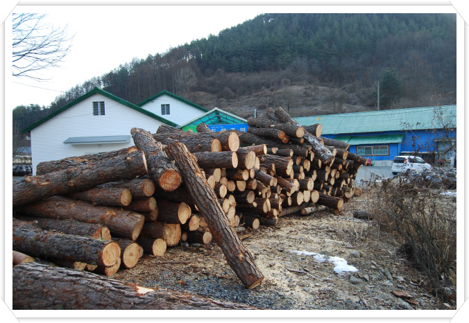 도해 죽염 공장 소나무 작업.1년에 100톤 이상 소모.^^"