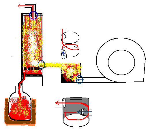이에 최대한 강한 바람을 화통에 넣어주고.. 화통에서 강한 마찰로 초고온이 발생되도록하여 죽염용융본체에 불을 쏘아줍니다.