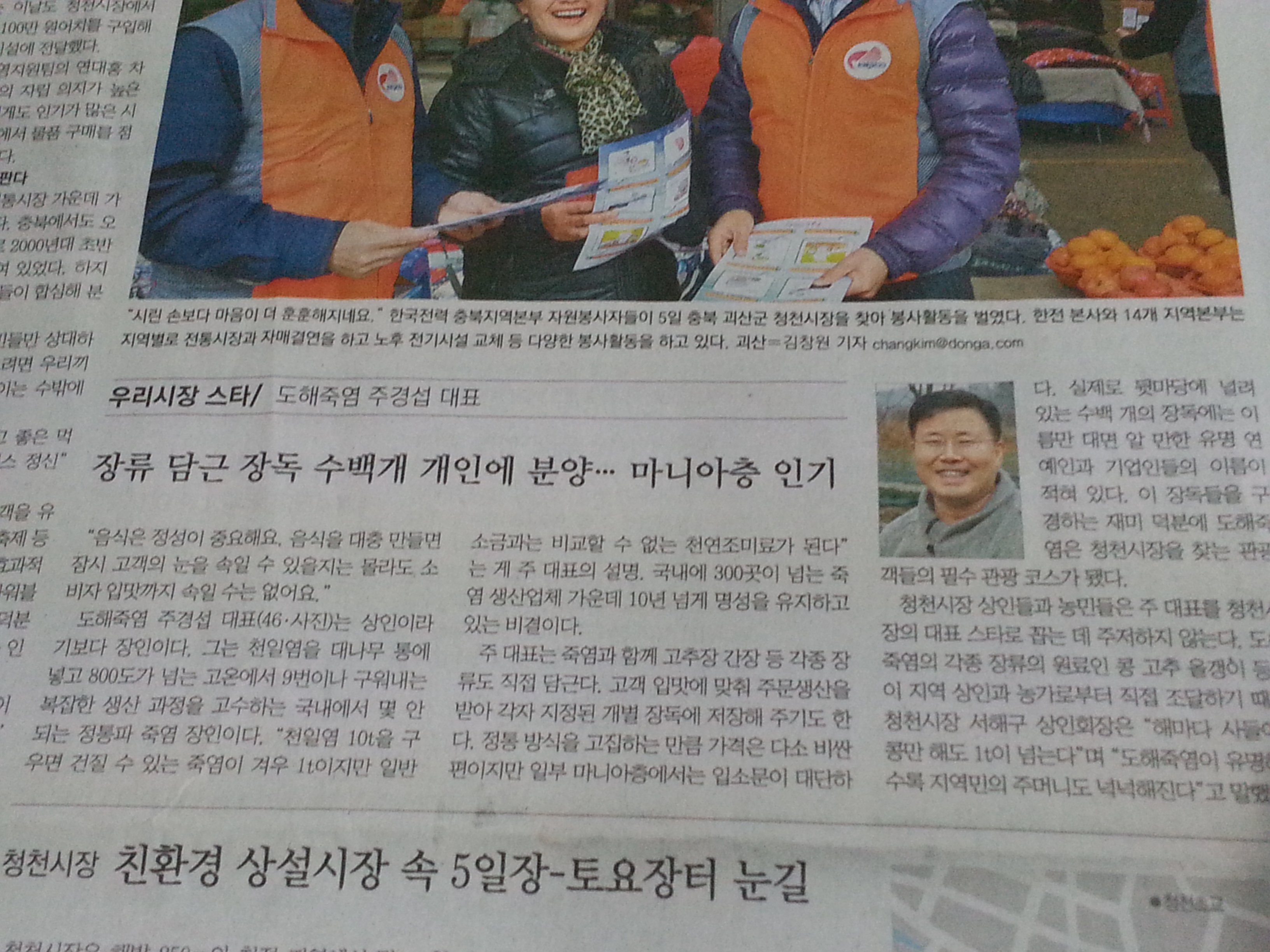 청천시장에서 시장도 살리고 고장도 살리는 도해죽염 사장님께서 스타로 발탁되셨네요.