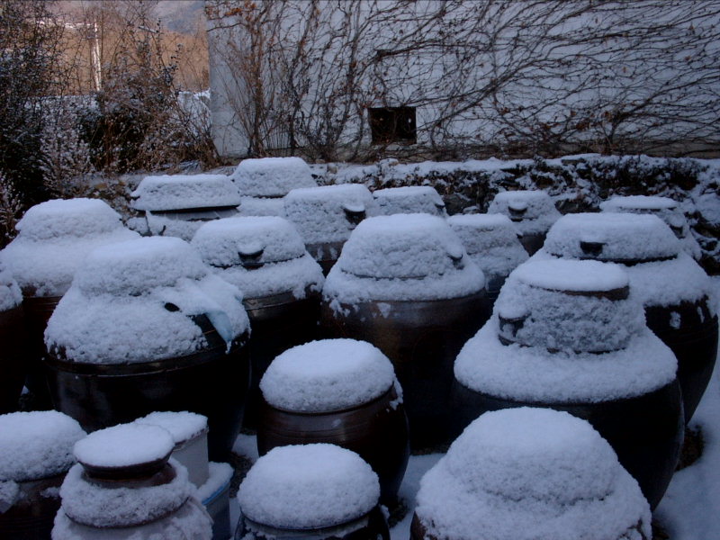 안녕하세요 원철님. 항아리 위에 눈이 소복히 쌓였네요. 오늘 부산에도 눈이 1분간 흩날렸어요. 주원장님 유원장님은 눈을 보자 마자 핸드폰을 두드리시더군요. 나! 참! 원철님 부산에 한번 놀러오세요!
