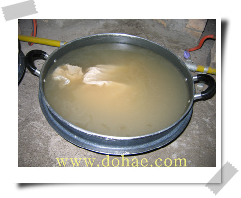 솥 뚜껑을 열어 놓고 할 것이며 가스불을 처음에는 세게 했다가 물이 끓기 시작하면 불을 약간 줄여서 오래 다린다(1시간 이상). 이 때 주의사항은 끓는 물이 넘치지 않게 불 조절을 잘해야 한다