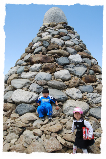 아이들과 노고단 정상 에서.