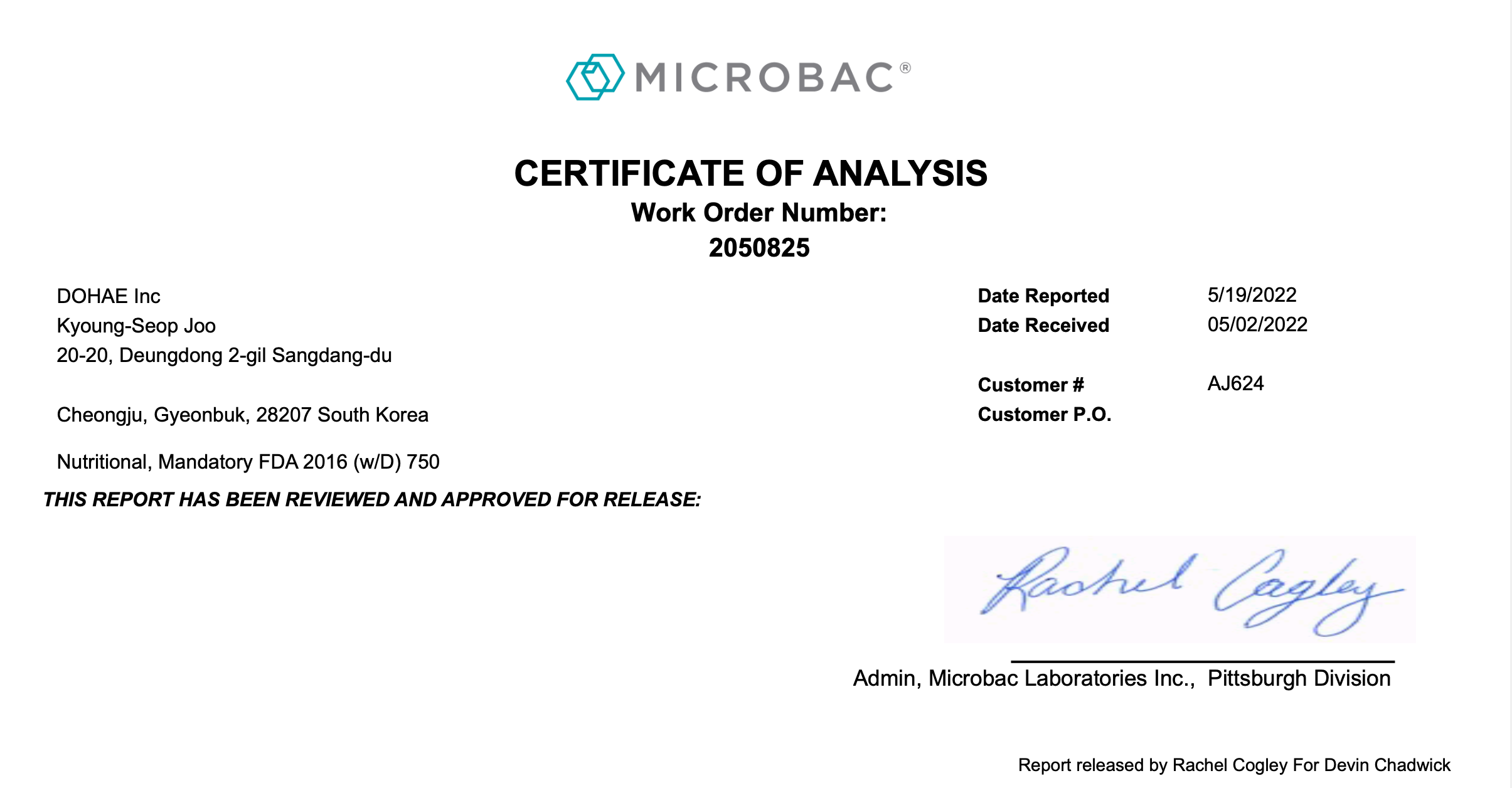 FDA 도해9회용융자죽염 성적서 (2022.5.2.)