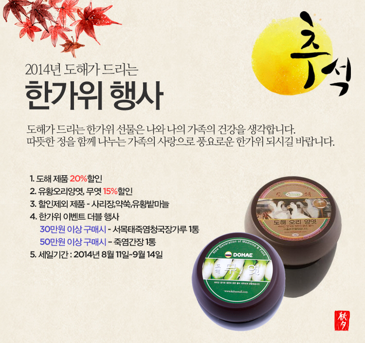 도해에서 한가위 세일을 벌써 시작하셨군요.