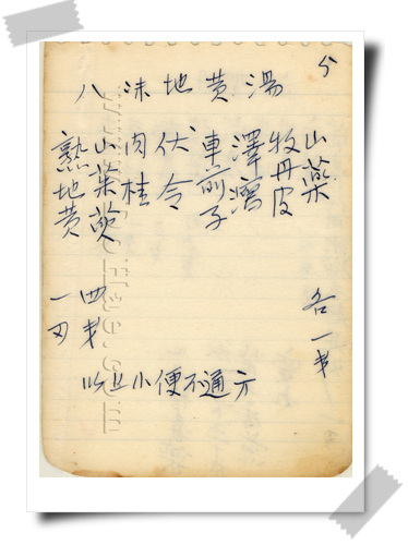 육계, 복령, 차전자, 택사, 목단피, 산약  各 1전