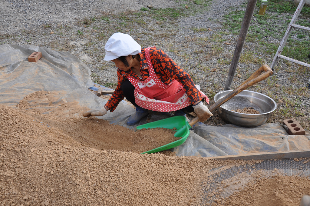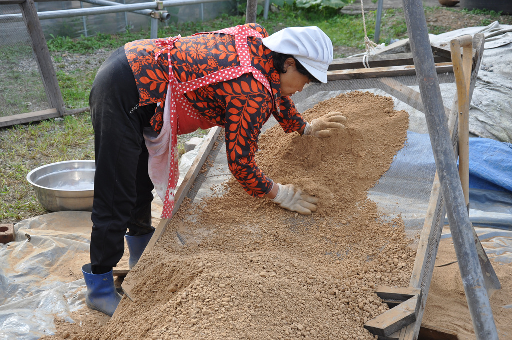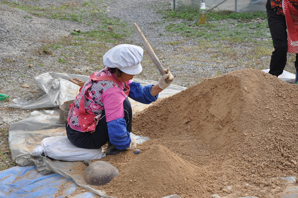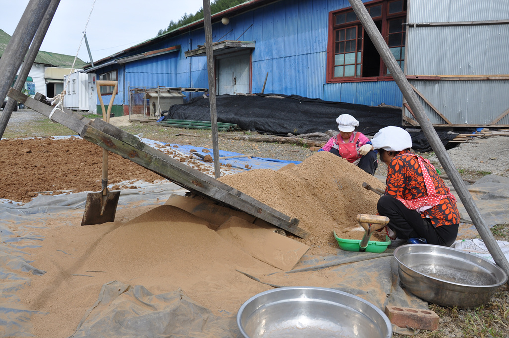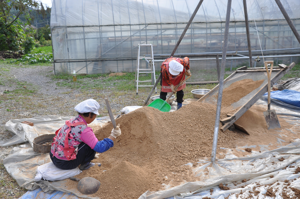 자(磁)죽염의 원료 황토 작업,
