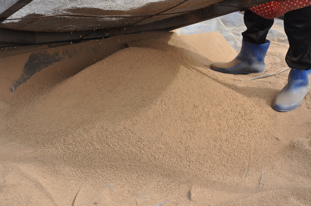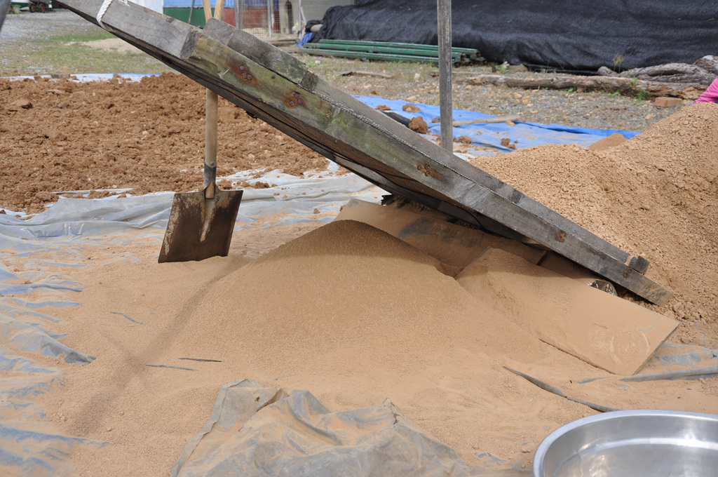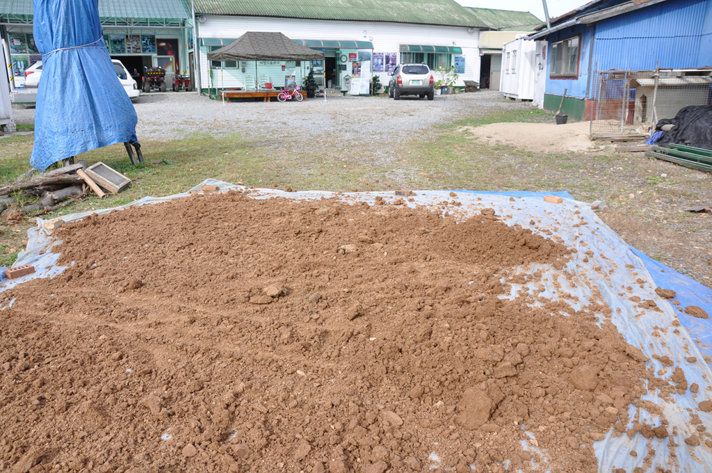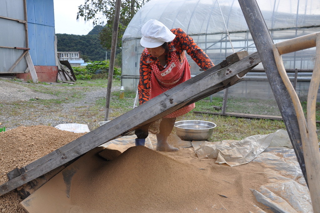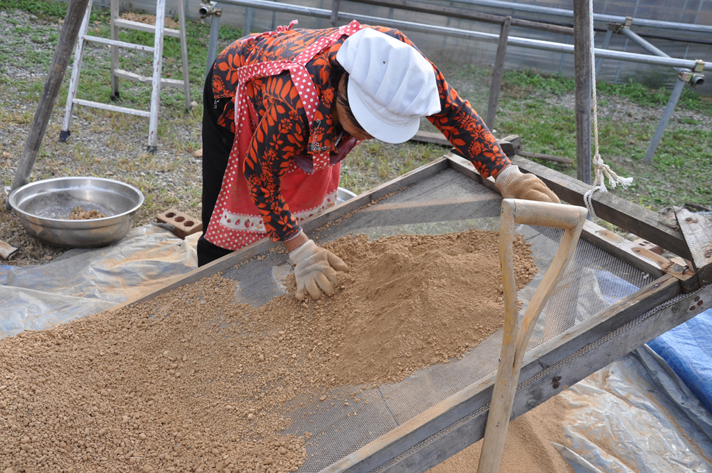 자(磁)죽염의 원료 황토 작업,