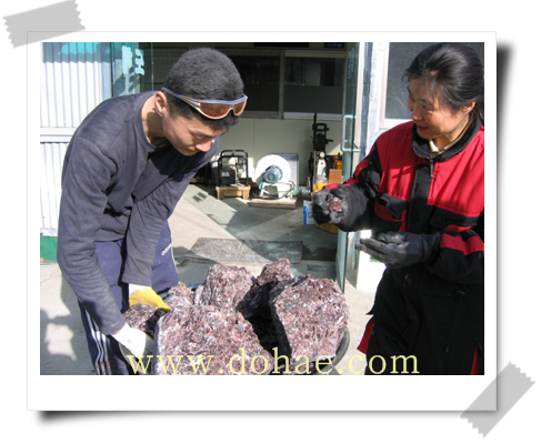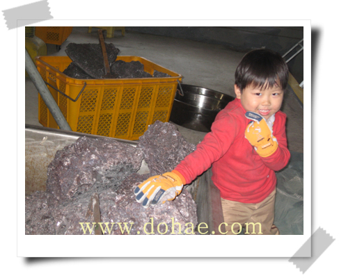자죽염의 원석 열심히 분해 작업중...