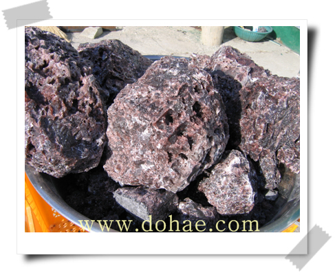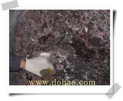 분해된 자죽염 원석들...