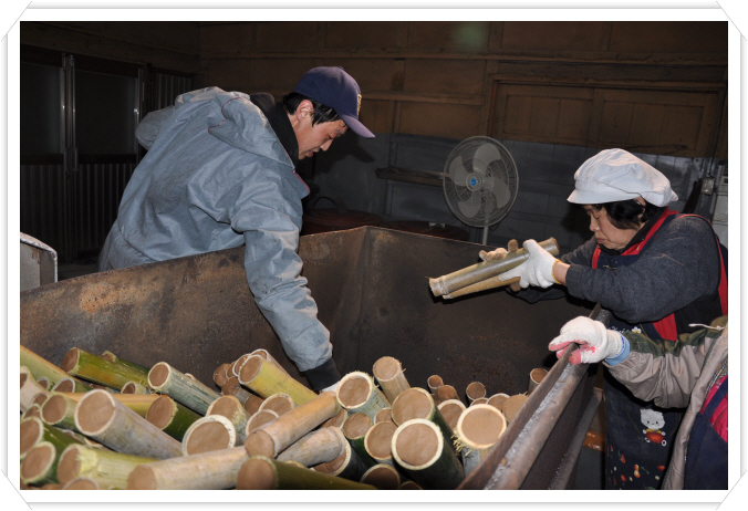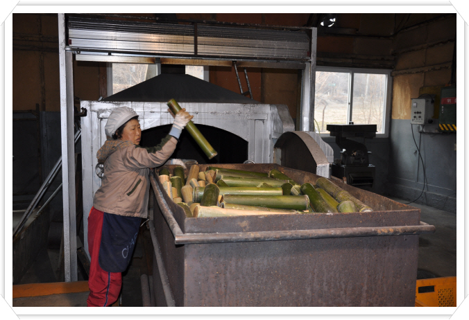 천일염을 왕대나무속에 넣어 아홉번째 용융시켜 만든 죽염
