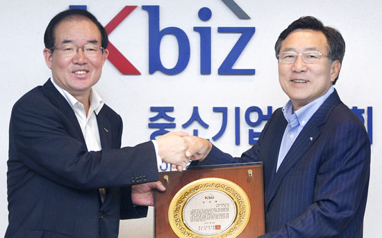 김기문 중소기업중앙회장은 26일 이희성 식약청장에게 감사패를 수여하고 "규제 업무를 하는 정부기관도 해당 분야를 잘 살리면 중소기업들에 큰 유익을 가져다줄 수 있다는 좋은 본보기"라며 "이 같은 사례가 다른 정부부처에도 지속적으로 확대되기를 바란다"고 말했다.