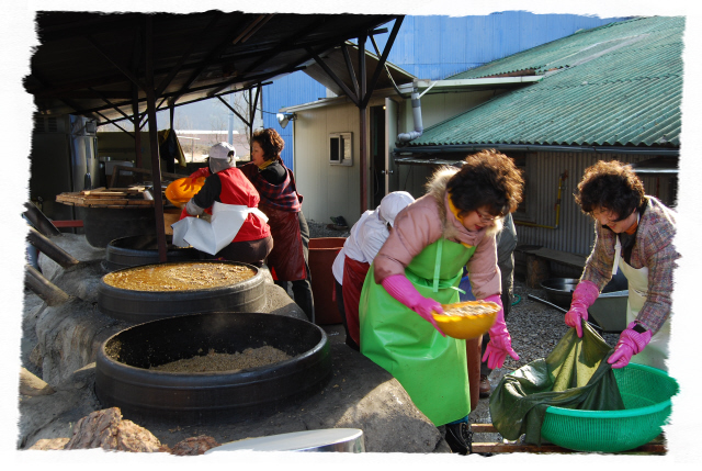24시간 내지 30시간 이내에 발효하면 큰 콩을 햇볕에 말려 장을 담근다. 최상의 건강식품이 된다.