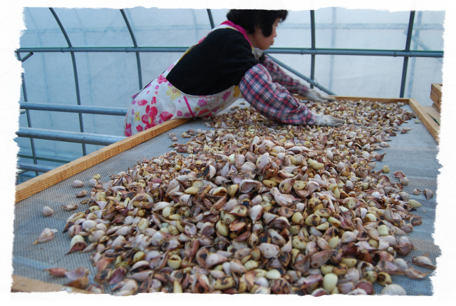 == 구운 황토 유황 밭마늘.==
