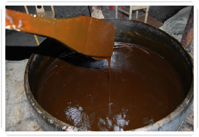 엿기름을 두어 당화(糖化)시킨 다음 짜서 건더기를 버리고 다시 달여서 엿을 만든다.