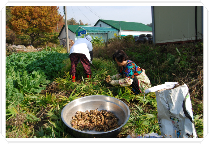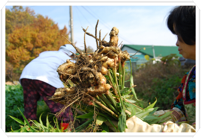 생강 작업.(고추양엿 법제용)
