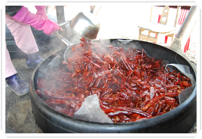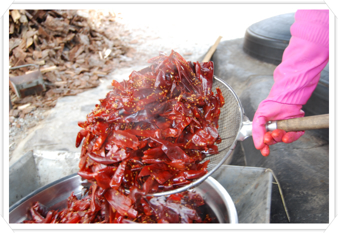 고추에 함유된 독성(毒性)을 재거하고 공간 색소중의 새로운 약성을 합성하기 위함이다.