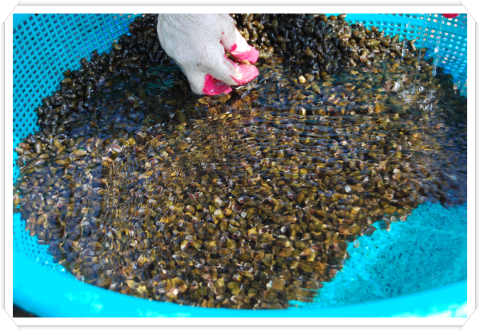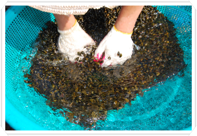 국산다슬기도 힘든마당에 약성으로만쓰인는 물방울 다슬기를 선정해서 하는 이힘든작업을,,,,,오로지먹는사람 복입니다^^*