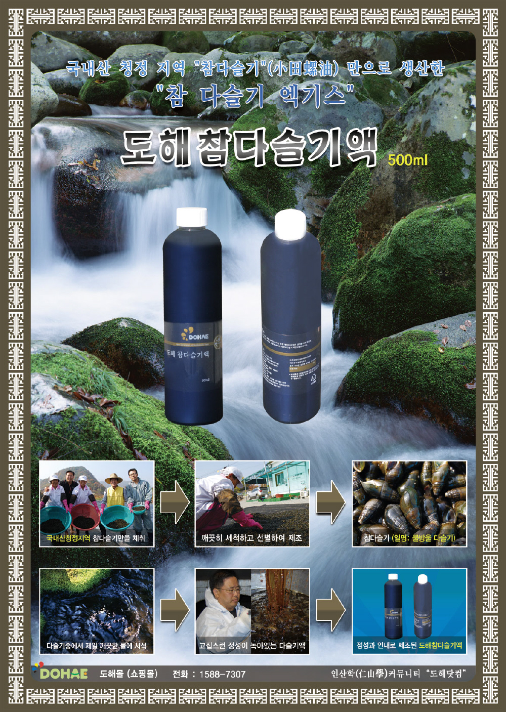현대사회는 공해(公害)물질(物質)의 증가(增加)와 오염(汚染)으로 날로 지구촌(地球村)의 오염은 더해 가고 있으며 원인모를 괴질(怪疾)과 병(病)으로 많은 사람들이 질병(疾病)의 고통(苦痛)으로 신음(呻吟)하고 있습니다. 건강한 사람도 다슬기(眞蝸螺) 양 엿(藥飴)에 죽염(竹鹽)을 첨가(添加)하여 꾸준히 섭취하면 간(肝) 기능(機能) 회복(回復)과 건강(健康)에 이롭습니다利).