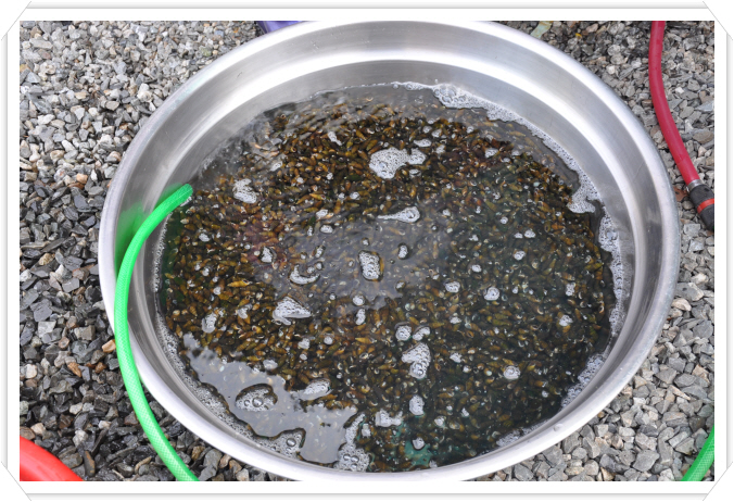 물 맑고 공기(空氣) 좋은 청정(淸淨)지역인 괴산군 청천면 일대에서 잡은 참 다슬기를 깨끗이 세척 후에 가마솥에 넣고 소나무 장작불로 3일 밤낮으로 다리는데