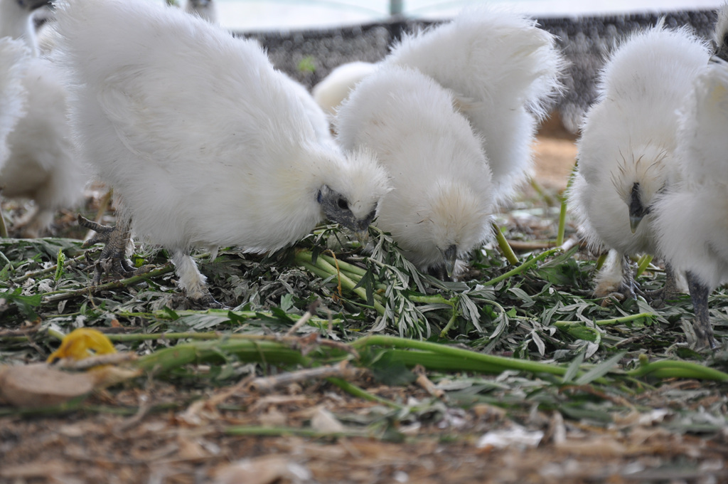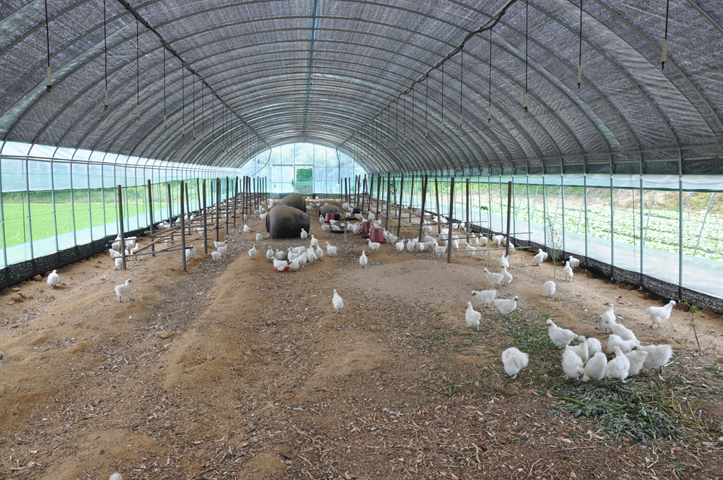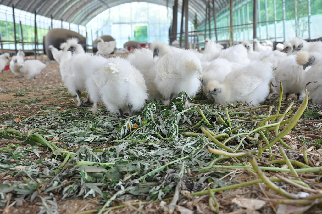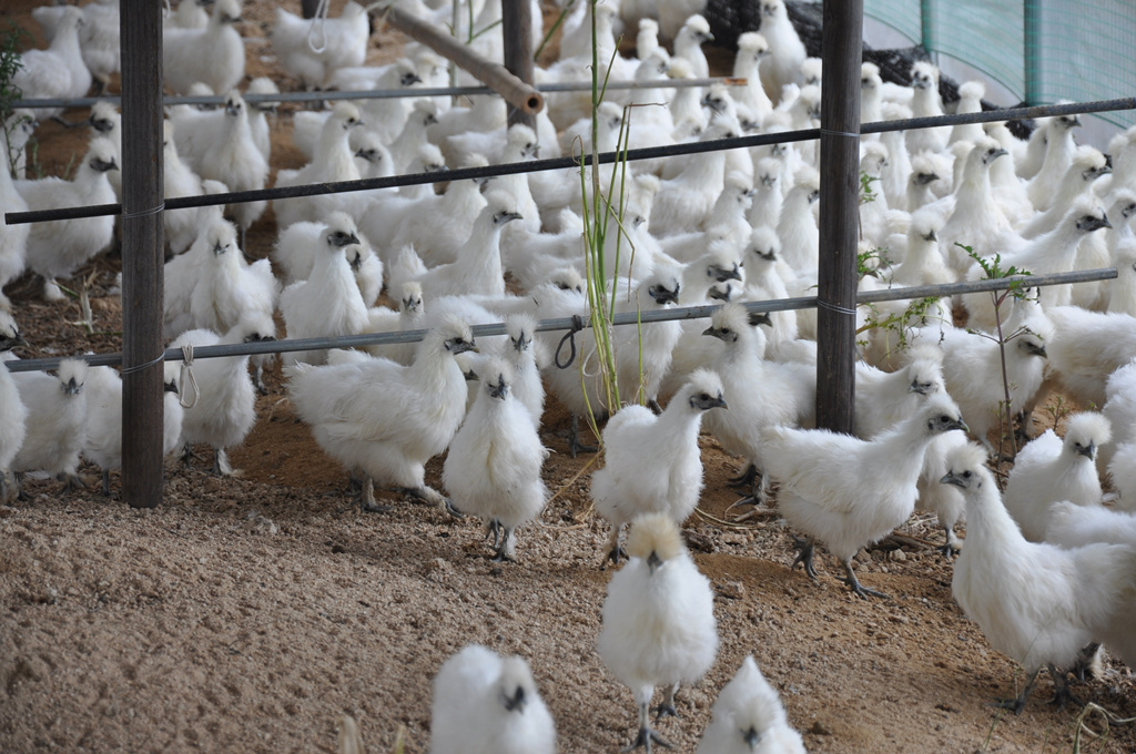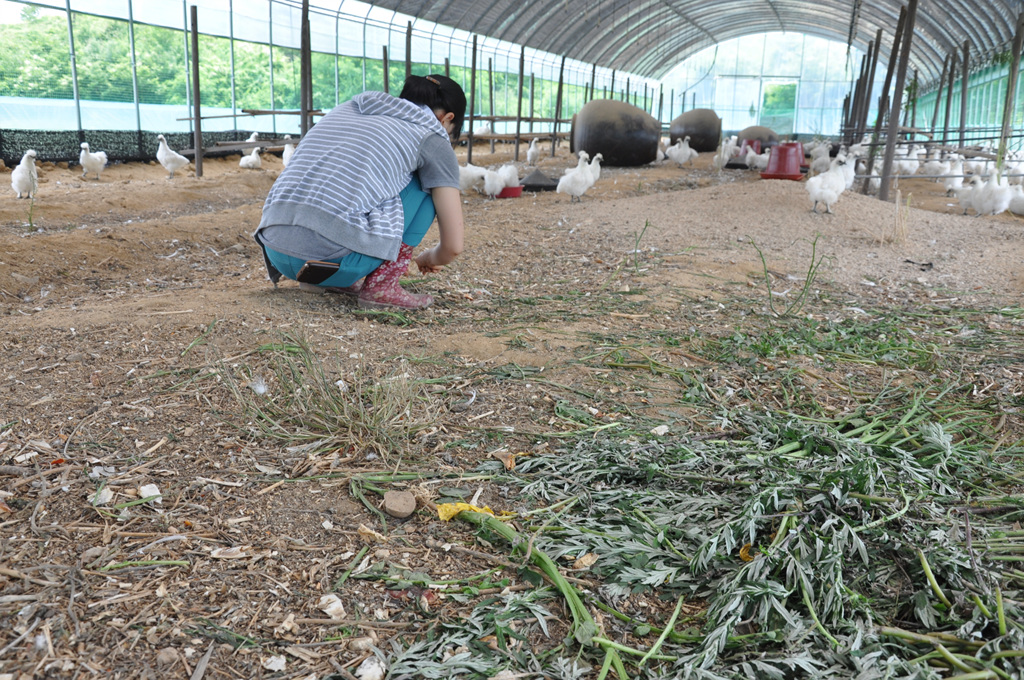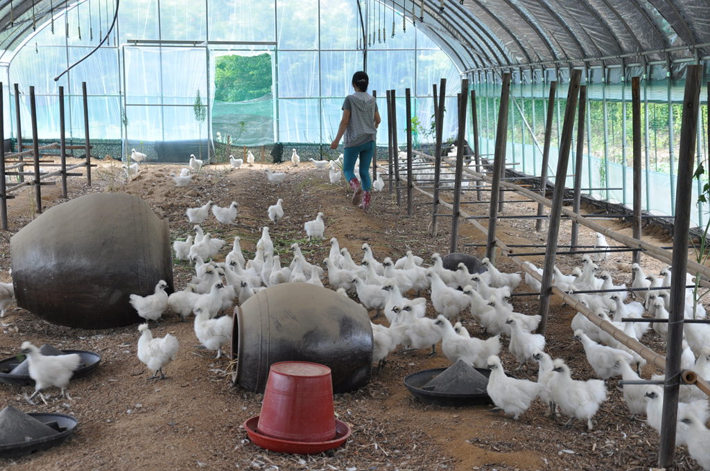 도해 계분백 농원 질 좋은 계분백을 위해 보리와 홍삼을 먹이로 준다,
