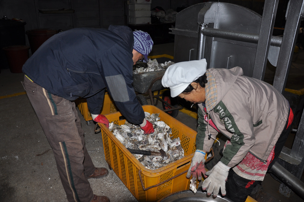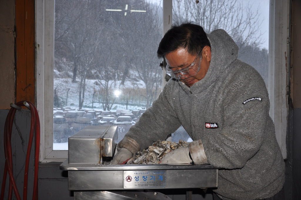 백봉 오골계의 귀한 사료가 되는 생굴껍질작업 결코 쉬운일이 아니었습니다.