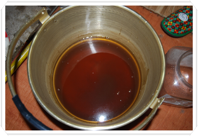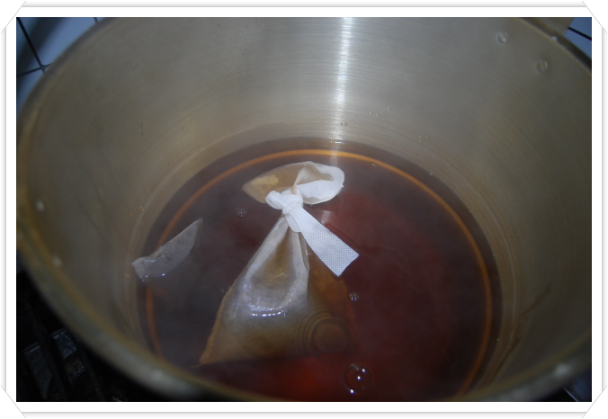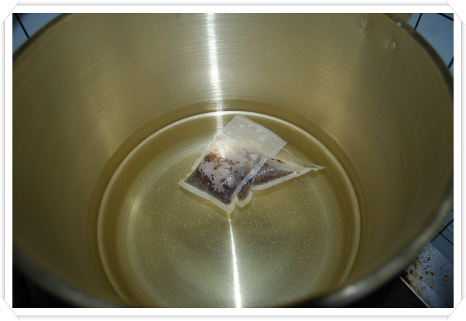 또 신곡(神曲), 맥아(麥芽), 누룩과 엿기름 그걸 곱게 빻아 가지고 모두 삼배 보자기에 싸 가지고 그 투가리의 보리차에다 담아 두면 24시간 후에 가만히 건져서 물을 따르면 그 물에 모두 우러나요.