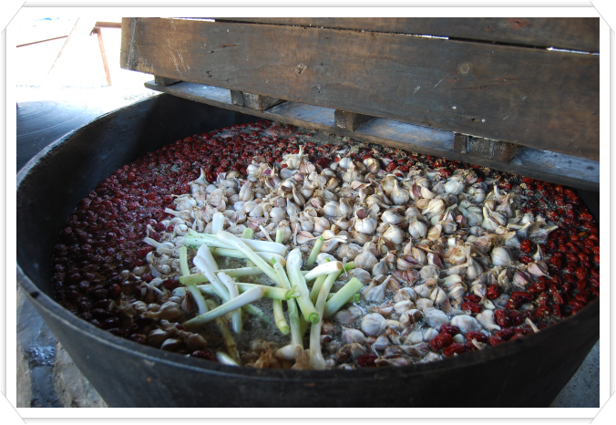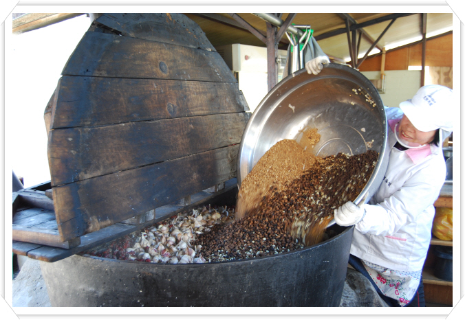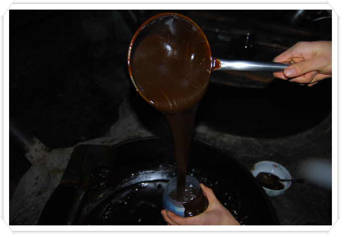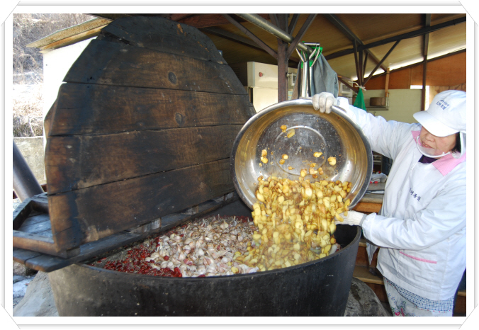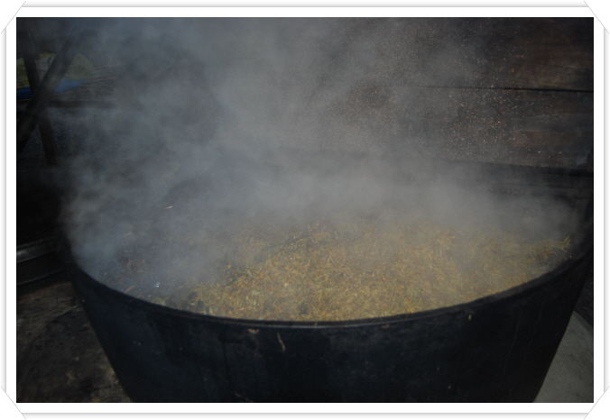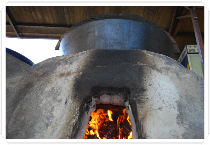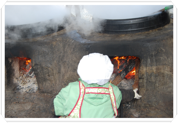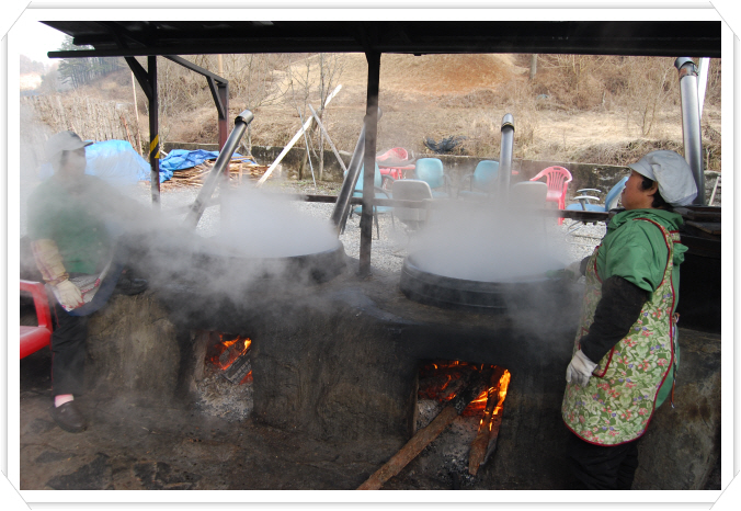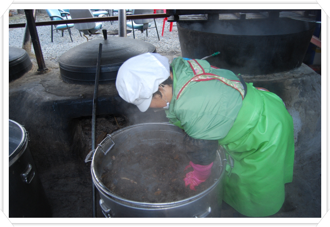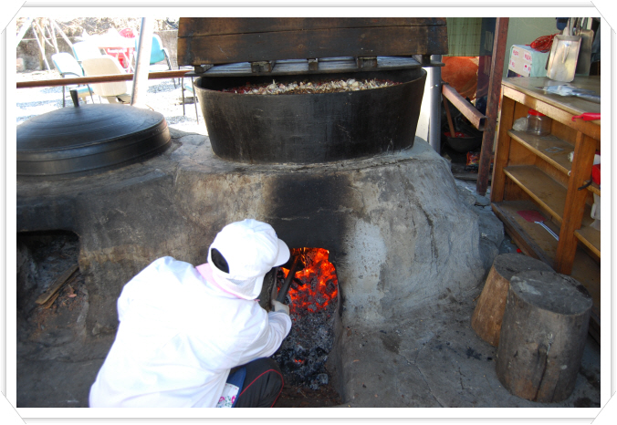 유황오리엑기스는 재래식 방법으로 가마솥과 소나무 장작불로만 만듭니다.