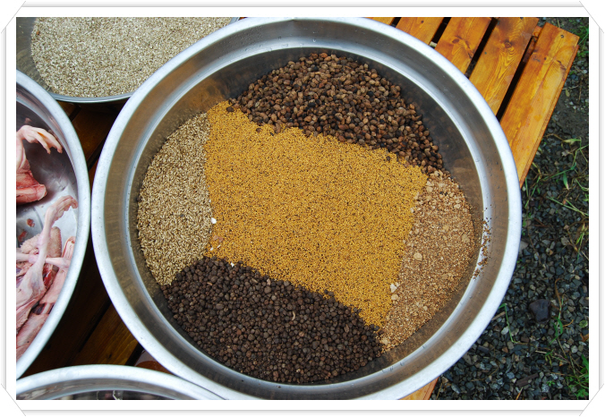오리들아 보리밥에 유황에 약재가루에 홍삼까지 잘먹고 잘놀고 잘싸고 해서 건강하게 무럭무럭 잘자라서 활인(活人)하거라.^^