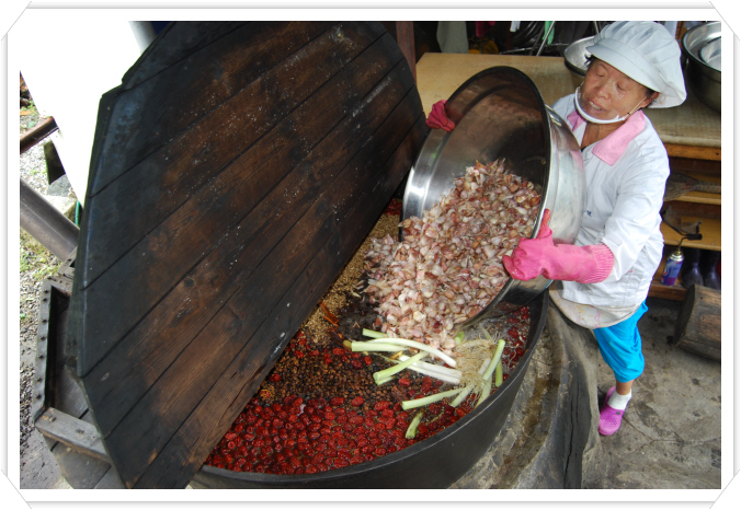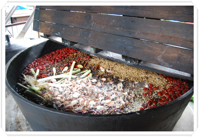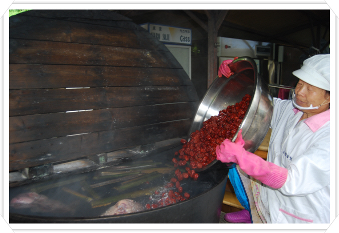 유황오리엑기스는 재래식 방법으로 가마솥과 소나무 장작불로만 만듭니다.