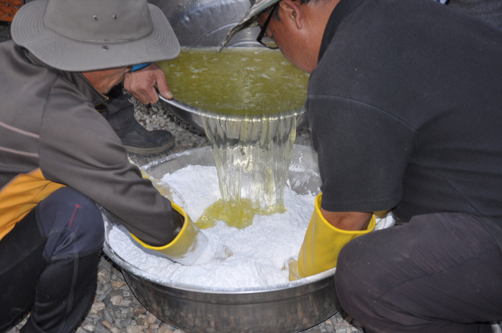 화학반응이 일어나면서 뜨거운 열기(熱氣)가 뿜어져 나오면서 계란 속의 수기는 증발되고 흰자위속의 백금은 남는데 혼합할 때의 열기(熱氣)와 색소가 또 화극금의 원리로 백금 속으로 들어가게 되어 식으면 수기가 완전히 증발되고 돌덩어리처럼 딱딱한 덩어리가 된 것을 분쇄 분말하여 죽염(竹鹽)과 같이 혼합하여 섭취하는 것인데
