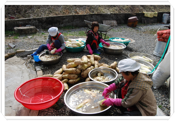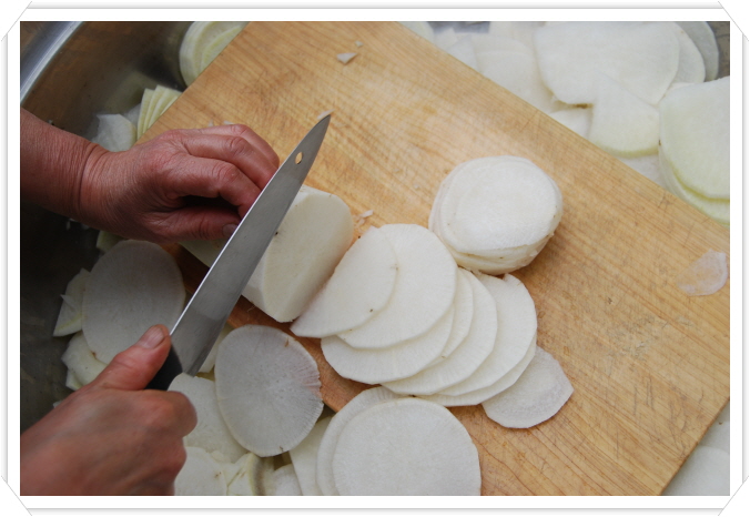 열심히 무우썰기에 집중하고 있는 현장입니다...^^ =='본초강목' 등에 무의 약성 특기== <본초강목>등의 기록을 보면