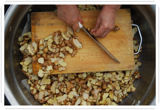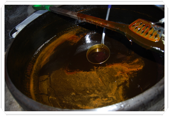 인산의학에서 빼놓을 수 없는 마늘도 넣고... 주현호도 잠 안자고 무우엿 만들기에 열심히해요... 생강도 넣고... 개구장이 현호도 직접체험 합니다. - 아이 손시려... 가마솥과 장작불 속에 어우러지는 조화로움 -무우의 변신입니다.