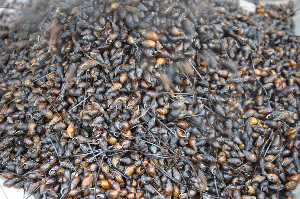 2013년 민물고동( 다슬기기름. 小田螺油 )작업