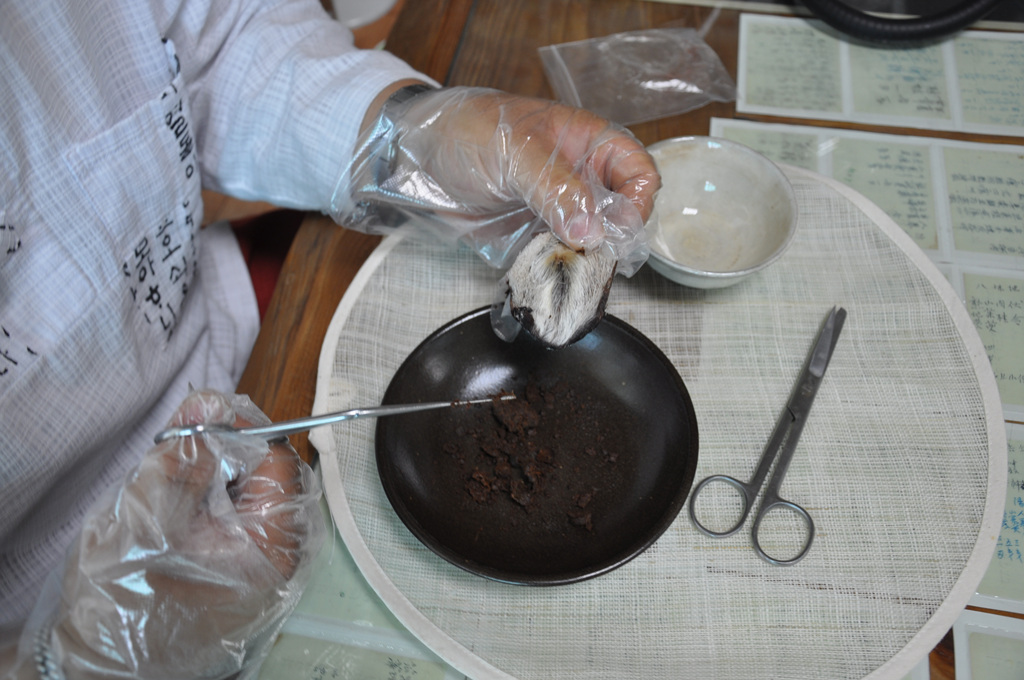 죽염장 2흡에 진사향 1푼과 용뇌(龍腦) 반푼을 정하게 타서 두고 사용하면 만종암에 신약이다.