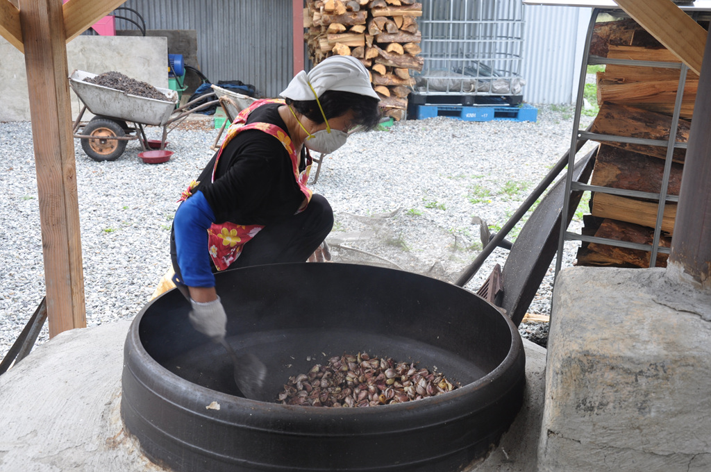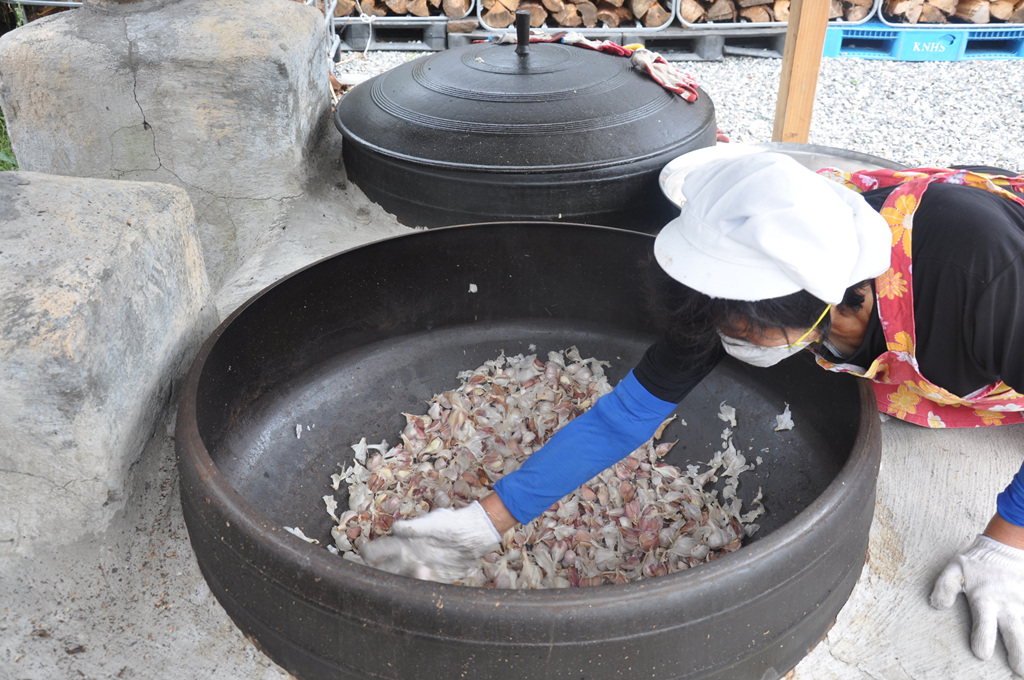 국내산 양질의 밭마늘만을 골라 가마솥과 소나무 장작불로 정성껏 만든 제품입니다.