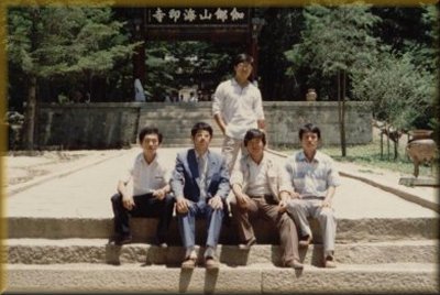 날씨가 매우족궁요. 헤인사 일주문 앞에서 찰칵! 완쪽부터 나, 고인이된장군, 경화씨, 윤락씨, 서있는사람이 경섭씨. 인산농장에서 열심히 일하고(1년간) 처음맏는 휴가였습니다. 꿀맛같은...