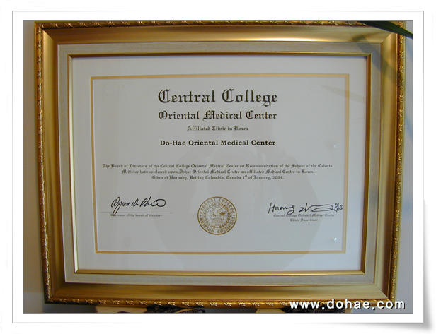 도해 한의원과 캐나다 센트럴 컬리지 제휴 인증서 입니다. 앞으로 인산의학이 세계로 널리 뻗어갈수 있는 계기가 되길 바랍니다.