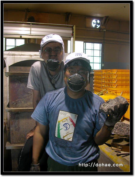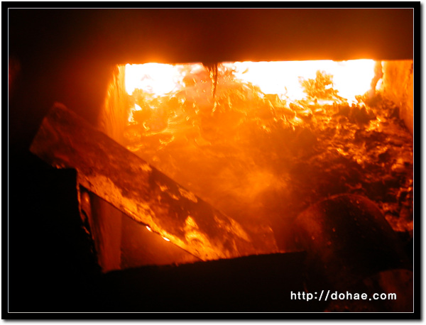 고마운 아주머니들. ^^ 수고많으십니더~ 소금은 단단하고 야무지게. 쿵쿵쿵! 이쁘죠? 정말 많은 손이 들어간 후 모습입니다. 손이 많이 들어갔다면 그 만큼 정신도... 황토. 순수한 황토만 취하기 위해~ 황토를 바르고 노에 가지런히~~~ 차곡차곡 정성껏! 소나무를 넣으며~~~ 흐뭇~~~ ^^ 이제 불을 넣는 작업이 남았네요.