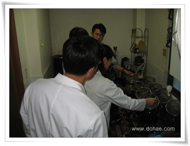 탕제실습사진이에요. ^^ 사무장님도 계시네요..