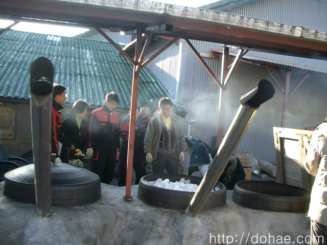 불을 계속 피우면서 신비스러움으로 지켜보면서 소담도 나누고 있는 모습입니다. 백반은 떫은맛, 신맛, 단맛 등이 어우려져 있답니다. 비장이 나쁠수록 떫은 맛이 강하다고 합니다.