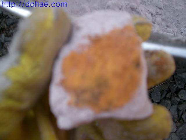 녹반에 묻은 신철분의 모습입니다 아래것은 이것을 제거한 모습입니다.