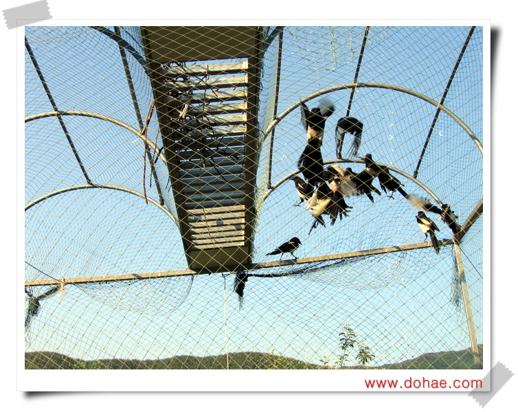 까치 잡이 그물 통.