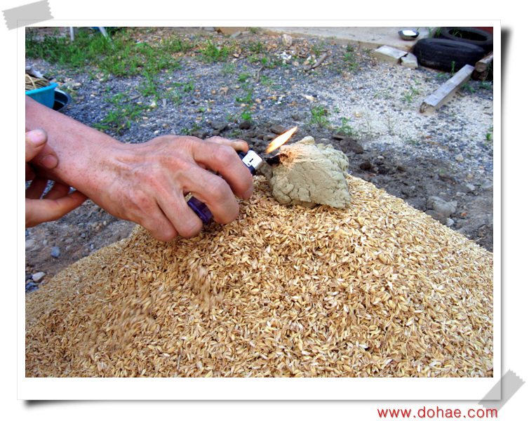약쑥 으로 점화.^^좋은 다슬기 기름이 나오길^^"
