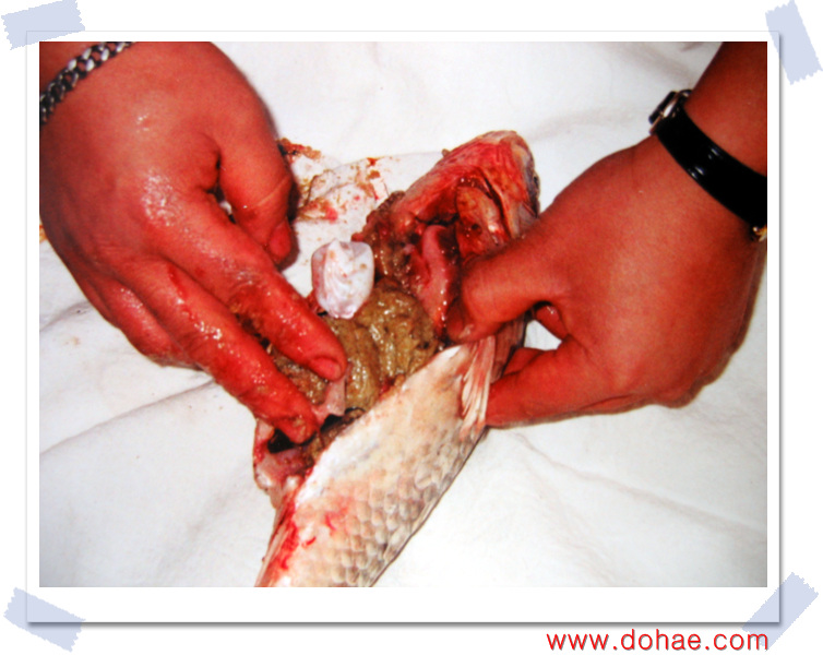 붕어염반산. *석수어염반산과 붕어염반산 제조법 : 먼저 월척(越尺)짜리 참조기(石首魚) 1마리와 옛날 암키와장 2장 및 닥나무 백지(닥나무 창호지) 3장을 준비한다. 다 준비되었으면 먼저 암키왓장 위에 닥나무 백지 3장을 겹으로 깐다. 그런 다음 조기의 배를 가르고(창자를 버리지 않음) 그 속에 죽염(竹鹽) 3냥, 백반(白礬) 5돈을 넣어 이를 닥나무 백지를 깐 암키왓장 위에 올려 놓는다. 그런 다음 이를 불 위에 올려 놓았을때 조기의 진물이 밖으로 흘려나가지 않도록 닥나무 백지의 양쪽  끝을 접어서 세운 다음 다른 암키왓장을, 조기를 얹은 암키왓장 위에 뚜껑을 덮듯이 잘 맞추어 덮는다. 그렇게 한 뒤 아래에 있는 암키왓장 밑에 불을 땔 수 있 도록 설치해 놓은 다음 이에 불을 때서 기왓장을 달구어 그 조기를 태운다. 이렇게 하여 조기가 타서 재만 남은 것을 가루낸 것이 곧 석수어염반산(石首魚鹽礬散)이다. 큰 붕어를 구하여 위와  똑같은 방법으로 하여 가루를 낸 것을 붕어염반산이라 한다. 이것은 고래(古 來)의 즉반산(鯽礬散)을 응용하여 그 약효를 더욱 강화시킨 신비(神秘)의 약이다. 위의 두 약은 모든 위장병에 대한 최고의 공통 신약(神藥)이다. 식도암(食道癌)에는 또 붕어염반산을 아침 저녁으로, 식전에 진한 생강차에 복용한다. 치유될 때 까지 계속 복용하라. 간단하면서도 매우 신비한 효과가 있다. *제2처방: 가미삼출건비탕(加味蔘朮健脾湯)을 달인 물에 앞의 석수어염반산(石首魚鹽礬散)을 함께 복용하되 몸에 맞게 무시로 먹는다.  또는 석수어염반산이나 붕어염반산을 알약으로 만든 석수어염반환(石首魚鹽礬丸)과 붕어염반환을 가미삼출건비탕을 달인 물에, 몸에 맞는 것을 보아가며 무시로 복용한다. 석수염반환과 붕어염반환을 제조하는 방법은 다음과 같다. 즉, 꿀을 오래 달여 수분이 없게 한 다음 석수어염반산과 붕어염반산을 그것과 반죽하여 오동나무 씨만한 크기로 알약을 만들면 된다. *가미삼출건비탕(加味蔘朮健脾湯) : 人蔘(인삼) ,白朮(백출)(土炒:황토물에 적시어서 불에 볶은 것), 桔梗(길경),丁香(정향), 백복령, 후박, 진피, 산사육 각 1돈, 지실, 백작약, 백두구(초) 각 8푼, 공사인(초),신곡(초), 맥아(초),원감초 각 5푼. 또 다른 치료 방법으로는 앞의 가미삼출건비탕을 달인 물에 가미금액단(加味金液丹)을 50알씩 아침 저녁으로 식전에 복용한다. 가미금액단은 제 22장 제 9절 아기가 밤에 우는 병을 참조하라.. 또 다른 방법으로는 앞의 석수어염반환이나 붕어염반환을 가스활명수에 무시로 복용해도  크게 효과가 있다.