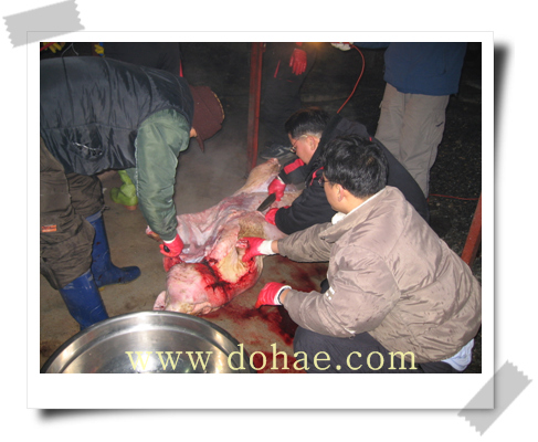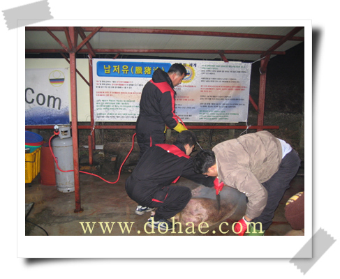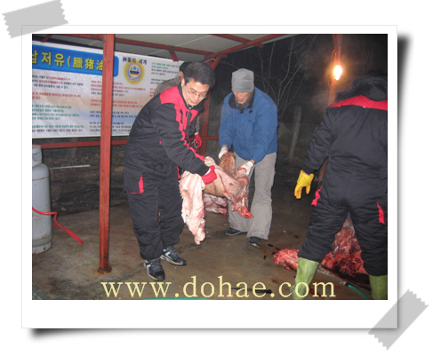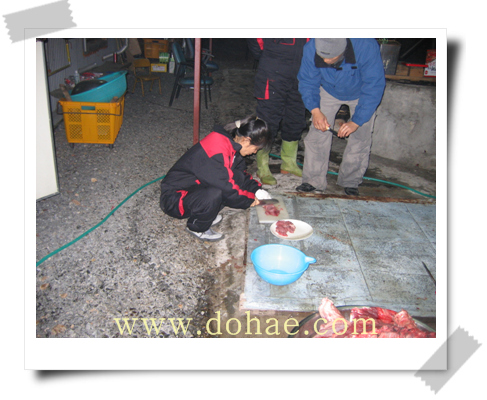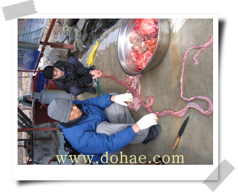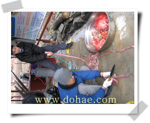 사리장이나 죽염으로 간하여 먹으면 더욱 맛있게 먹을수 있습니다. 납저유날 먹어 볼수 있는 특별한 별미인 돼지 창자국이었습니다,,, 모두 수고 많이 하셨습니다. 건강한 한해 되세요.