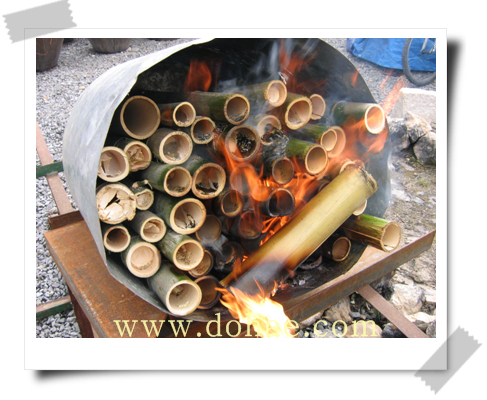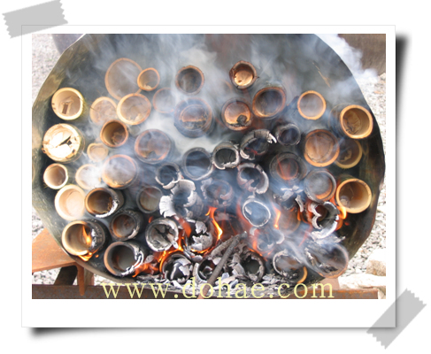 죽력 만드는 방법!! 신선한 대나무를 약 30-40cm로 잘라서 양끝의 마디를 제거하고 세로로 쪼개서 4등분한다. 쪼갠 대나무를 불위에 걸쳐놓고 화력을 가하면 대나무의 양쪽 끝에서 맑은 액체가 흘러내리게 된다.