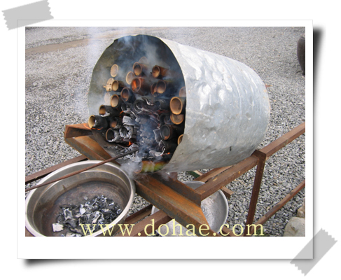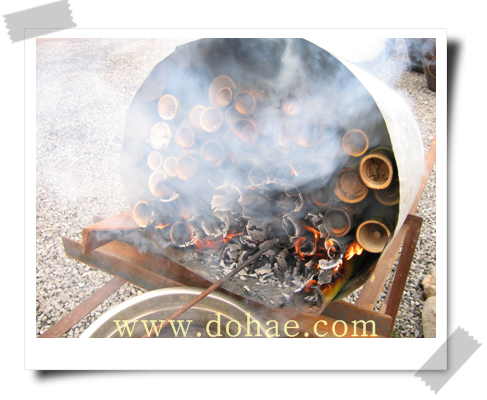 이렇게 모은 죽력을 거름종이로 걸러서 불순물을 제거한 후 깨끗한 유리병에 담아 냉장고에 보관한다. 죽력 복용 법!! 죽력 20cc를 생강즙 3cc(강판에 갈아서 즙을 냄)와 함께 복용한다.