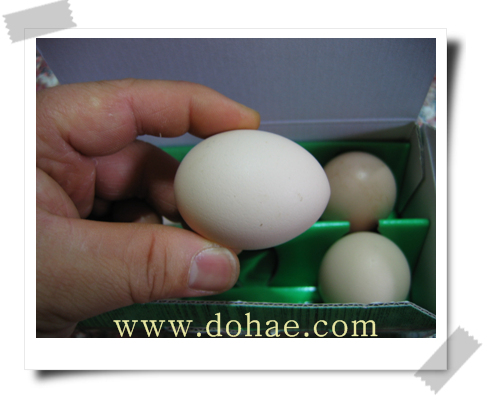 (10) 백봉오골계와 연산오골계는 일반양계와는 달리 근육, 내장, 뼈 등이 일반적으로 흑회색을 띠고 있다. ==백 봉 오 골 계 알== 국어대사전 (민중서관,2000)에 [ 오골계는 동북 아시아의 원산으로 몸은 작고 다리가 긴흰털로 싸여 있는 것이 특징임. 깃은 백색인데 피부 뿐만 아니라 살,뼈 까지도 흑자 색임, 풍증,습증,허약증에 약으로 쓰임.] 이라고 기록 하고 있습니다.